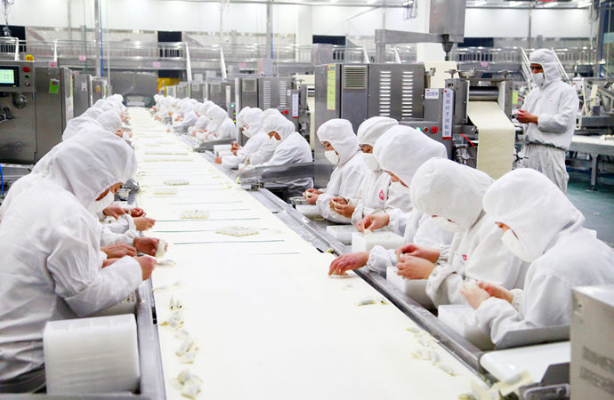 思念食品的生产车间内,一只只水饺正从生产线缓缓流出,自动完成速冻、称重、装袋、封口、包装等一系列工序,从而走进千家万户的餐桌。