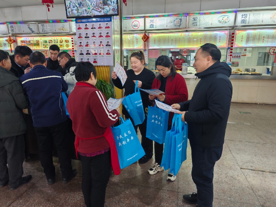中心坚持将宣传教育与业务工作紧密结合,主动深入企业开展“送法上门”式宣传,活动现场,志愿者围绕“全民反恐、共创平安”主题,将反恐防恐宣传融入应急救援业务指导全过程。在白坪煤矿会议室,与煤矿管理人员、救援队伍负责人开展座谈交流,共同观看反恐警示教育片,结合典型案件深入剖析恐怖主义现实威胁,强调以源头治理为抓手、以安全生产为目标,构建“预防—管控—应对”一体化的反恐防范体系。随后,志愿者深入餐厅、副井口车,向一线职工发放反恐怖宣传手册、宣传海报、手提袋等宣传资料,面对面讲解识别可疑行为、应对突发暴恐事件、紧急自救互救等实用知识,从个人防护、企业应急、社会共治三个维度展开宣讲,推动形成政府引导、企业落实、职工参与的联动格局,切实增强企业本质安全水平和整体反恐能力。