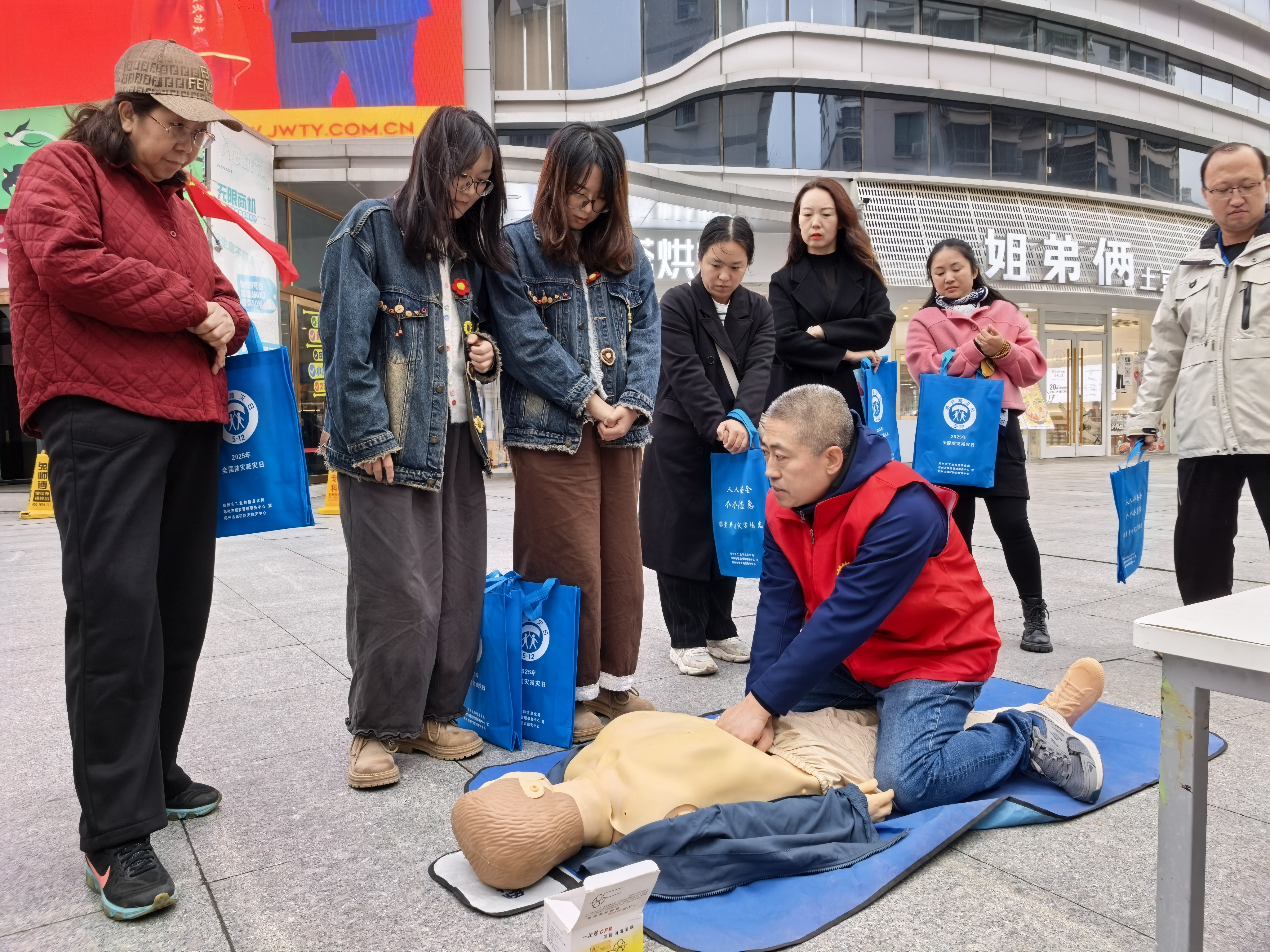 活动现场,志愿者团队搭建宣传阵地,通过悬挂主题横幅、设立咨询展台、发放科普资料等形式拉开序幕。针对居民日常安全需求,志愿者们精准投放宣传物资,涵盖防灾减灾应急手册、市民公共文明常识读本及《郑州市文明行为促进条例》等各类资料,将灾害应对知识与文明城市建设要求深度融合,引导群众树立“安全与文明并重”的意识。专业志愿者以“理论讲解+实物操作”的方式开展急救培训,重点普及心肺复苏与海姆立克急救法。借助人体模型,志愿者分步演示按压深度、呼吸频率、腹部冲击位置等关键动作,对上前实操的居民逐一纠正指导,确保大家掌握标准流程。为激发参与热情,志愿者对积极提问、规范操作的群众现场发放防灾减灾宣传扑克牌、主题帆布袋等文创用品,以寓教于乐的方式让安全知识入脑入心。