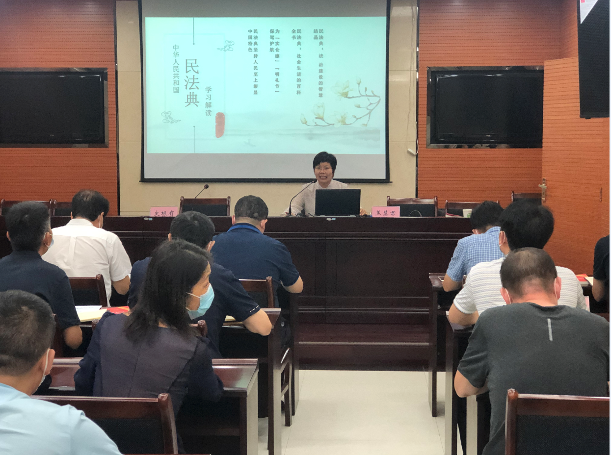 为扎实做好《民法典》学习宣传工作,提升中心干部职工的法律意识和法治素养,根据河南省委宣传部、组织部、省司法厅和省普法教育工作领导小组办公室等部门关于深入开展《中华人民共和国民法典》学习宣传活动的工作要求,2020年8月20日,郑州市中小企业服务中心开展了《民法典》法律知识讲座,邀请河南财经政法大学检察学院焦慧君教授现场授课,中心全体干部参加了学习。