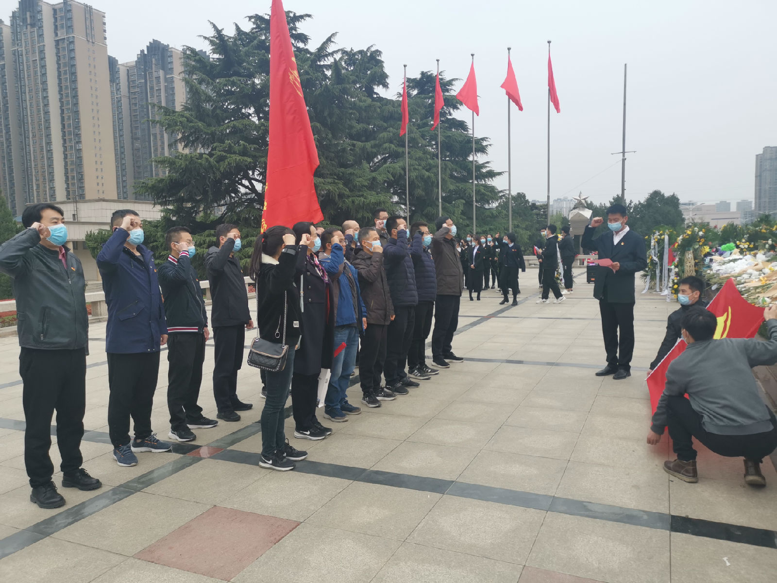 在庄严的革命烈士纪念碑前,全体党员干部怀着无比敬仰的心情,依次向烈士纪念碑敬献鲜花、默哀鞠躬,深切表达对革命先烈的敬仰与哀思;面对纪念碑和党旗,大家重温了入党誓词。此次活动,不仅是一次对革命先烈们的深切缅怀,更是一次传承革命精神的实践活动。大家纷纷表示,要以革命先烈为榜样,在今后的工作中继承先烈遗志,传承革命精神,让信仰之火越燃越烈,让红色基因融入血脉,让红色精神激发力量,不忘初心、牢记使命,牢记党的宗旨和使命,立足本职,勤奋工作,为郑州市国家中心城市建设贡献力量,以优异成绩向党的100周年献礼!