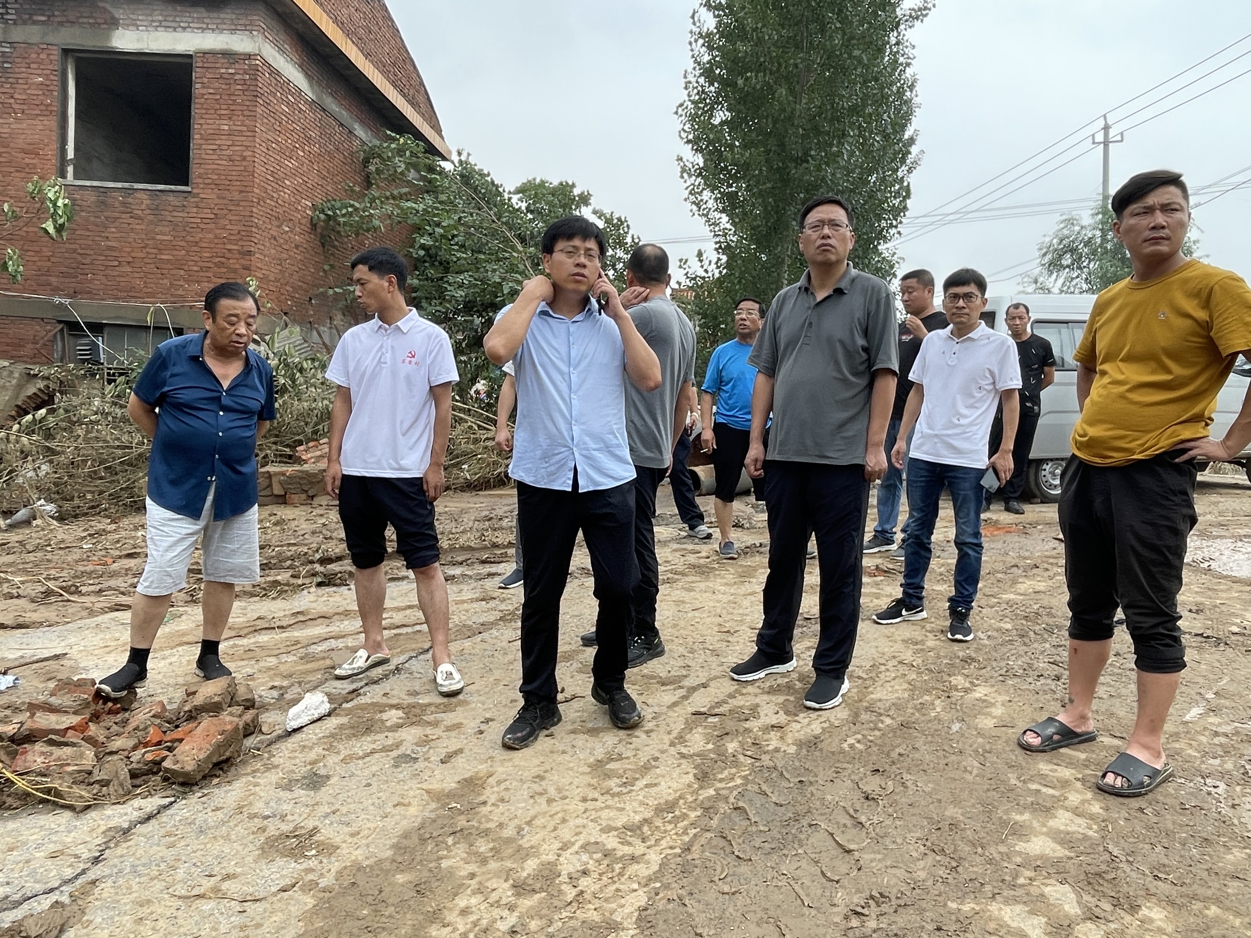 郑州市中小企业服务中心驻苏砦村精品村建设工作专班带领苏砦村党员干部群众全面排查险情全力开展抗洪救灾工作