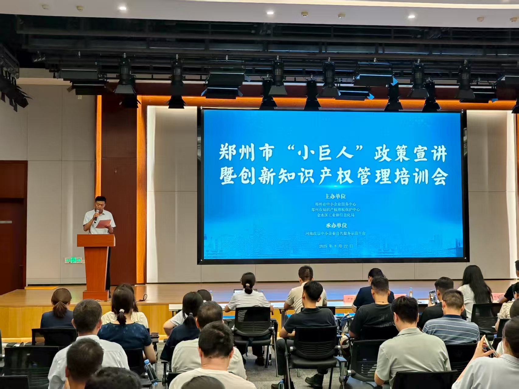 8月22日,由郑州市中小企业服务中心与郑州市知识产权维权保护中心联合主办的“小巨人”政策宣讲暨创新知识产权管理培训会,在金水区市民中心(政务服务中心)顺利召开,国家级、省级专精特新企业和知识产权强企的代表等120余人参会。